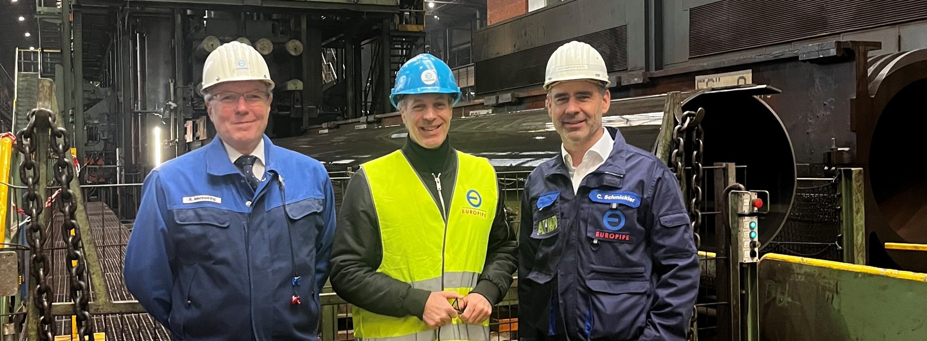 During a company visit, EUROPIPE’s management informed Sebastian Fiedler, Member of the German Bundestag for Essen-Mülheim, about the current situation of the German and European steel pipe industry and the importance of robust supply chains for the expansion of European energy networks – particularly for natural gas (CH₄), hydrogen (H₂) and CCS infrastructure.